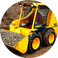 1990s: Once again, JCB transforms the industry. This time by designing the JCB 165 Robot, the world's safest skid steer loader. Thanks to its patented single powerboom loader design and side entry cab, the 165 Robot, and our existing skid steer range today, has easier, safer access and greater visibility.