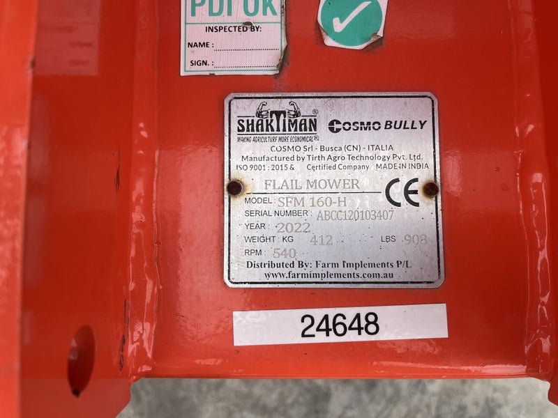 Make:CosmoModel:SFM-160 Flail Mulcher Transmission:n/aVehicle body:Pasture & Lawn MowersStock Number:12119