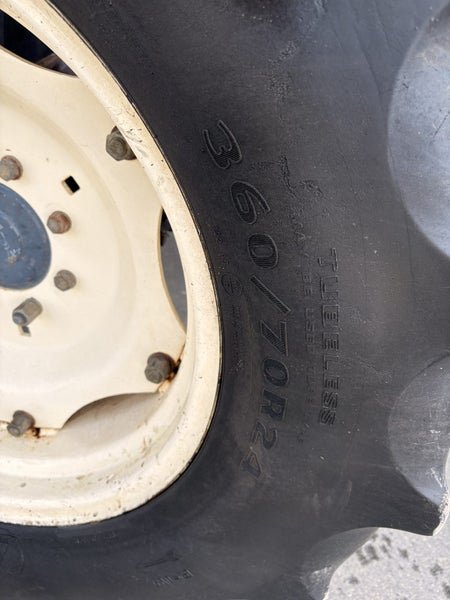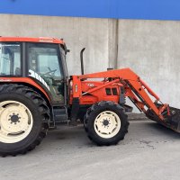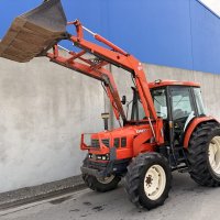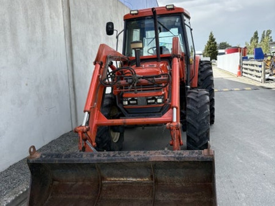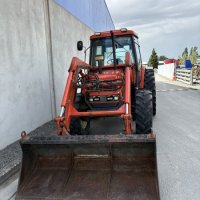 Tidy Daedong (Kioti) DK 90 4WD Tractor with bucket. 90hp tractor, 2 rear remotes, good reliable tractors with a perkins 4.0L 4-cyl diesel engine, 12 speed trans, good radial rubber