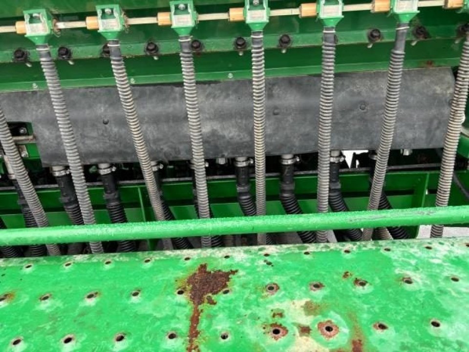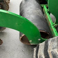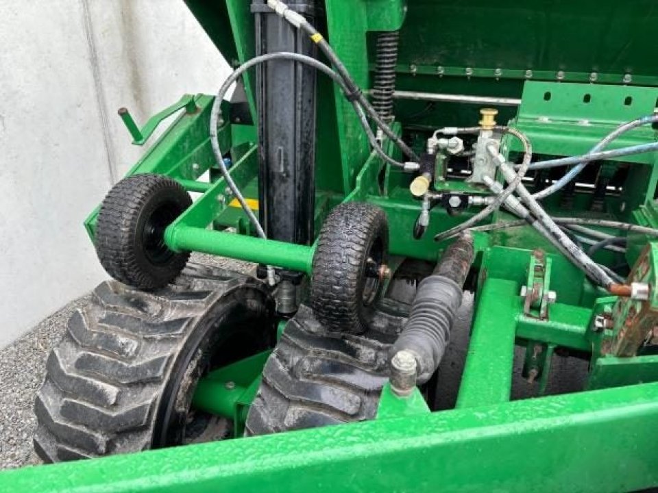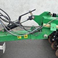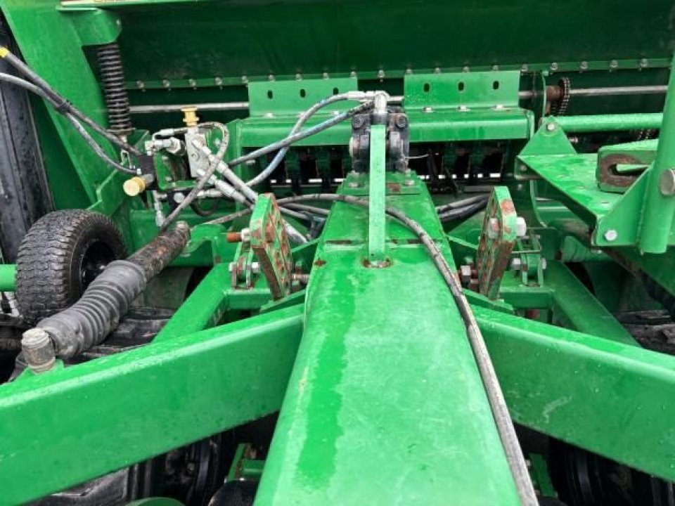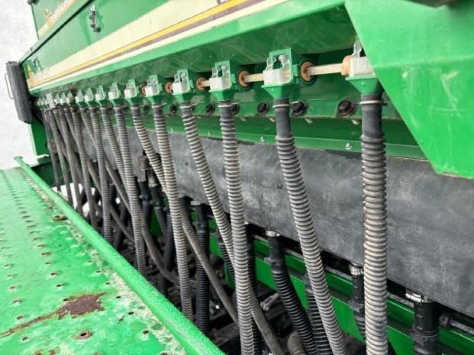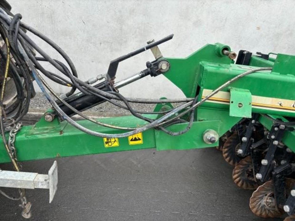 Very tidy one owner Great Plains V300 triple disc drill, large seed/fert bin with adjustable partition, small seeds / insecticide box as well, 6 inch spacing, roller for rolling between carrying wheels for cultivated soil, pivot between opener tool bar and seed bar for towing around corners (lockouts for transport), loading platform, auto downward hydraulic pressure, ready to drill.