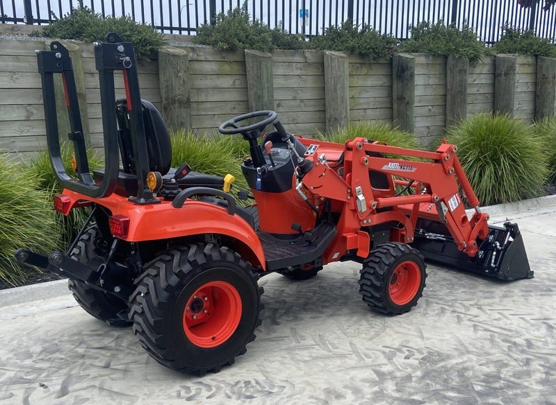 New Kioti CS2610, Compact tractor with a big presence, 4wd, 25hp 3cyl Diesel, 2 Speed Hydrostatic with twin touch pedals, Rear 3PTL, and PTO (540rpm) Mid mount PTO, Flat platform making getting on and off easy, Diff Lock, Self Level FEL, 3rd service and 4in1 bucket. Gusty little tractor that will surprise you