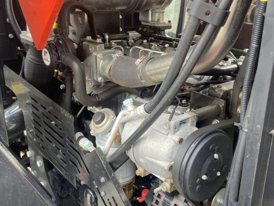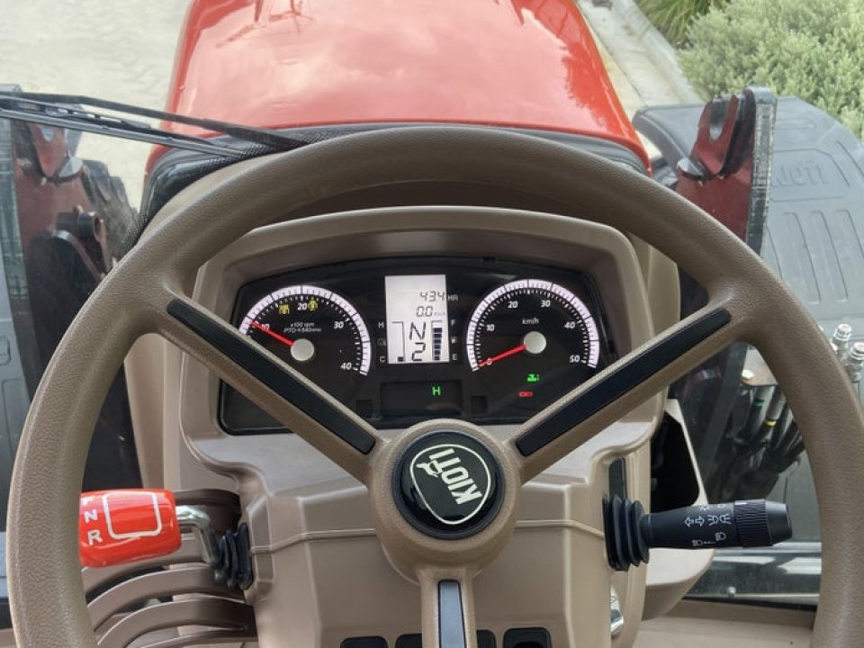 Engine Kioti 4 cylinder 3833cc Turbo Diesel Engine Common Rail Water Cooled 140Hp Gross rated Power @ 2200 RPM Cab Pillar Mounted Exhaust 230L Fuel Capacity Transmission 32 Forward 32 Reverse Power Shuttle 8 Speed Power shift and Creeper Four Wheel Drive Elec/Hyd Engaged Auto 2WD Function Work and Drive Modes Multi-Disc Wet Clutch PTO 540/750/1000 RPM Rear PTO Independent Rear PTO Electronically Engaged Auto PTO Function PTO Cruise control External PTO Switch Operator Environment 5 Pillar Large panoramic cabin Roof mounted air conditioning Flat operator platform Integrated armrest with throttle, power shift, auto shift and rear 3 point linkage controls Integrated loader joystick with power shift button Telescopic and tilt steering column Grammer Air suspension heated seat, 8 Working Lights Operator Environment Loader sunroof with sun shade Telescopic external mirrors Roof mounted Bluetooth audio system Cooler/Warmer Box Hyd/Linkage 4 Sets Quick Coupler Rear Remotes including 1 x Float/Detent Closed Centre Load Sensing Hydraulic Pump System 118L/min Hydraulic flow at rear remotes, Electronic 3 Point Linkage Cat 2 Hook Ends 4852kg Lift Capacity Weights & Dimensions Wheelbase 2600mm Overall Length 4518mm Overall Height 3011mm Total Weight 4853 Min. Turning Radius 4200mm Wheel Equipment Rear Guard extensions, Tyres 420/70 R28 Front 520/70 R38 Rear