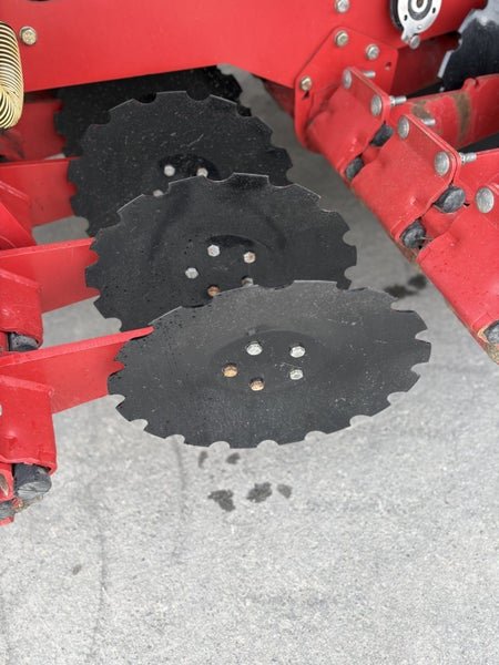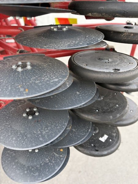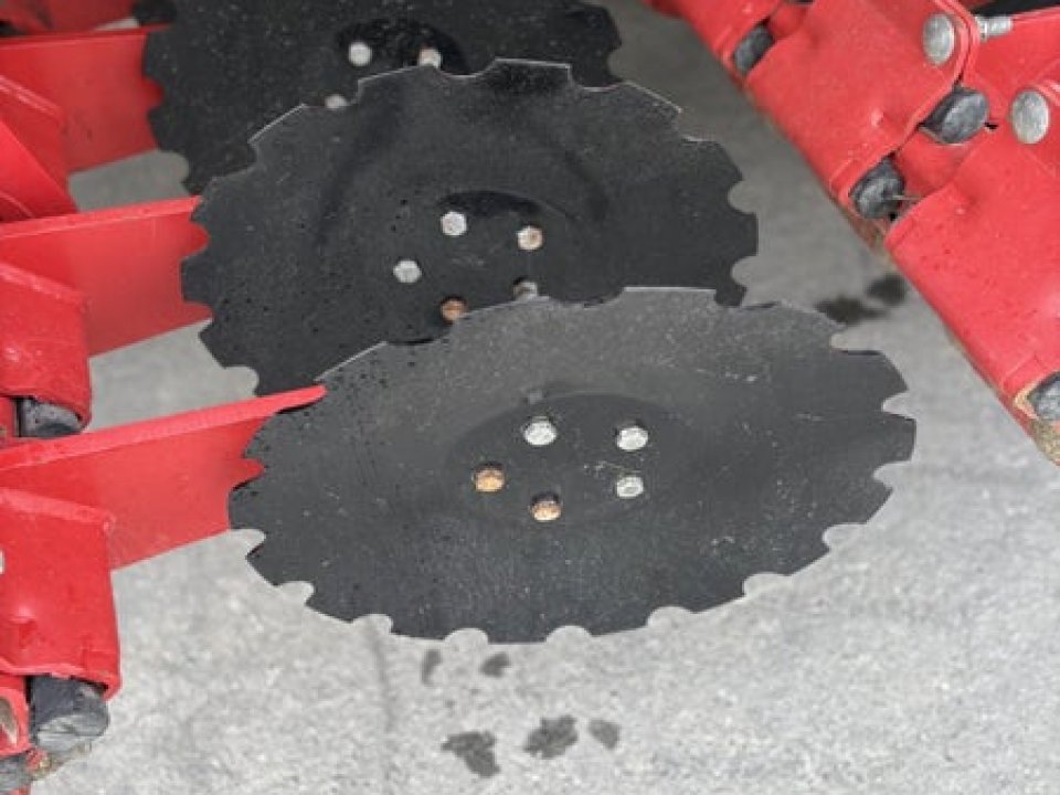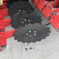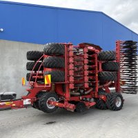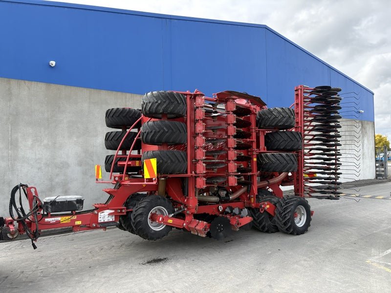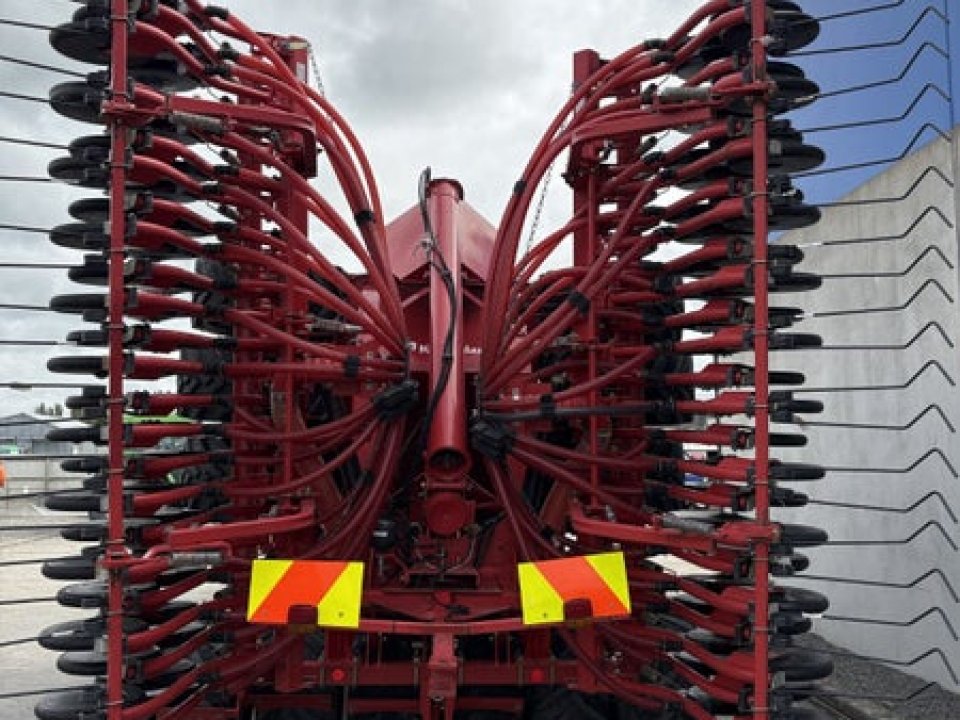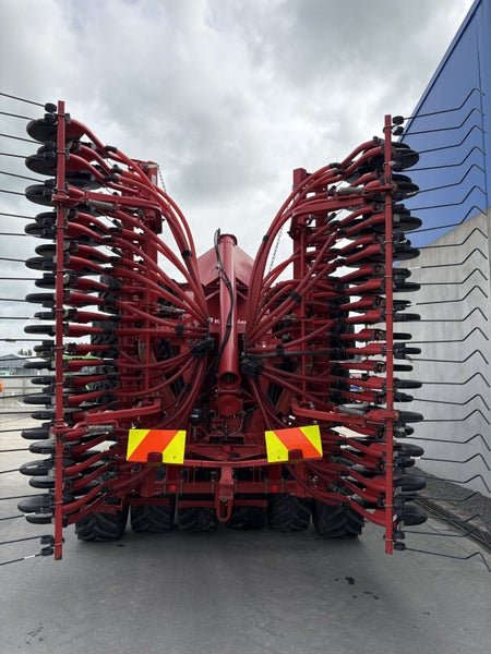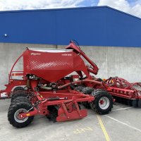 12.5cm (5 inch)sowing spacing ,48 CD Coulter, cat 3 N825mm cross shaft ,Star disc on short harrow, Scrapers on Press Wheels, tramline Shut off Valve x 4 (Max 8), LED Lights, Complete 9-wheel front packer 800mm, these drills set the benchmark in cultivation drilling with pre packer, cultivation discs the packer to reconsolidate, double disc coulter with adjustable depth and coulter pressure on the go followed by a press wheel and covering harrow, half side shut off, E-Drive seed cartridges with ability for variable rate seeding.
