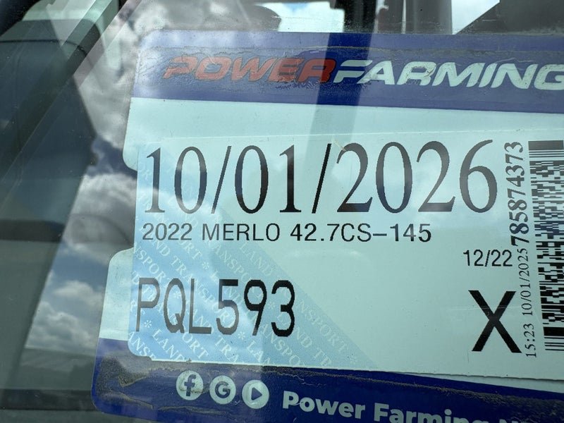 Make:MerloModel:42.7 Turbo Farmer Black Merlo 42.7CS-145Year:2022Width:230mTransmission:CVTFuel:DieselVehicle body:LoaderStock Number:21884