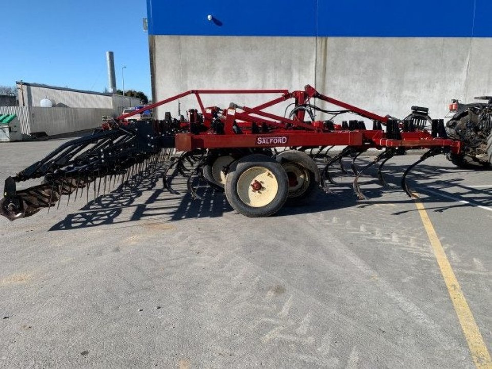 Very tidy Salford 450 8.0 mtr tined cultivator with leveling harrows and crumbler roller, good heavy duty cultivator with sprung legs, heavy duty points ,draw bar with two sets of remotes, double oscillating depth wheels, great for primary and secondary and finishing passes, great flexible tool.