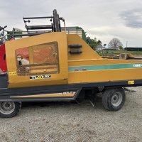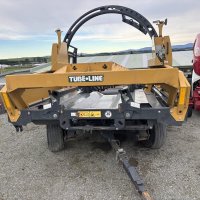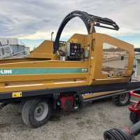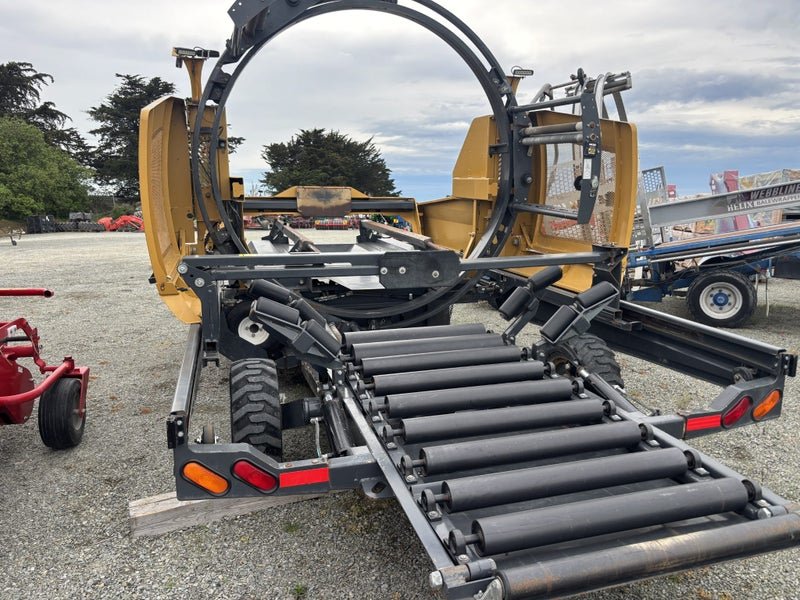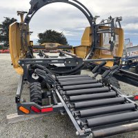 This Tubeline TL60 LSV (Limit Switch Valve) has a 20hp Honda motor c/w 11gpm oil pump, electric over hydraulic controls, hydraulic steering. Will wrap up to 6' round bales and 3x3 & 4x4 squares up to 6' long. Three film stretchers. A very tidy unit.