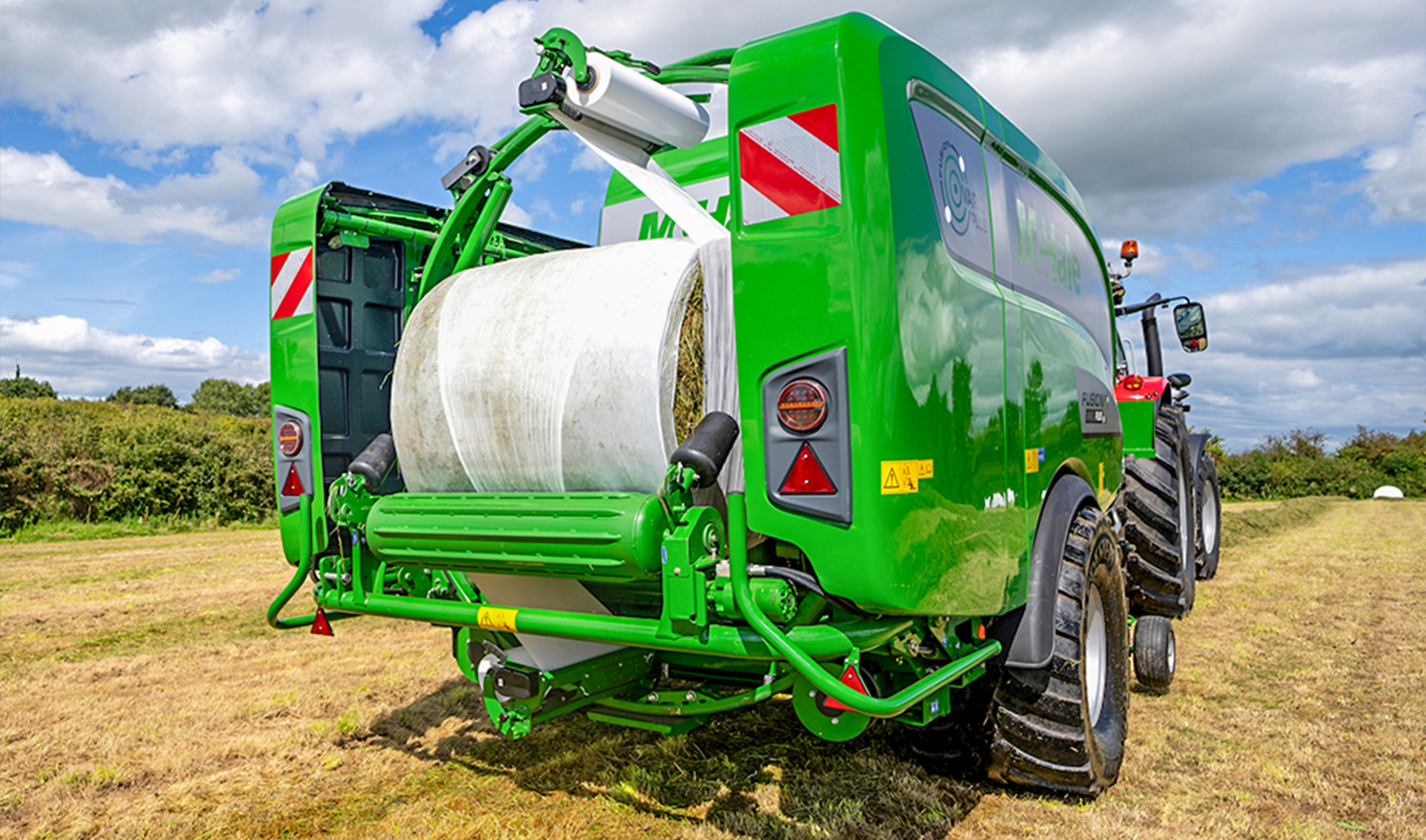 The McHale Fusion Vario Plus also has the ability to make bales of hay and straw from 0.6m to 1.68m (2’–5’6″) but in haylage or silage, it produces bales from 1m to 1.45m (3 ‘ 3 “–4 ‘8 “) to allow for wrapping.