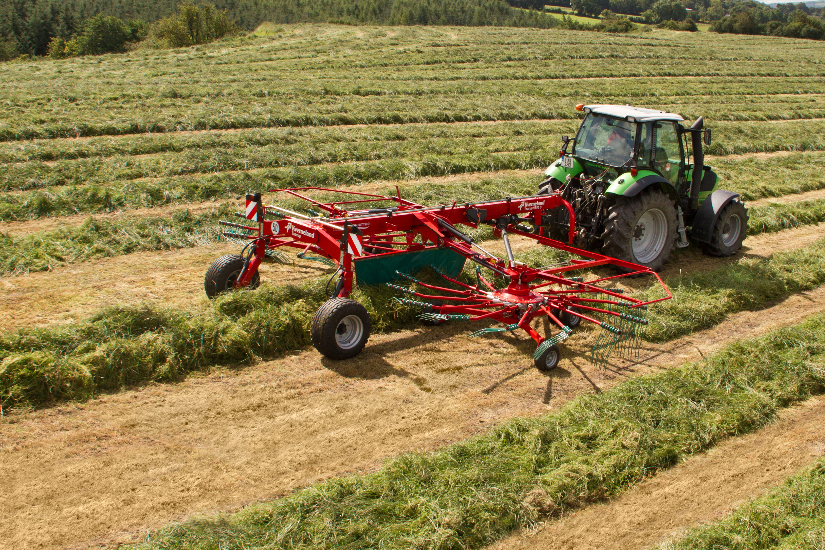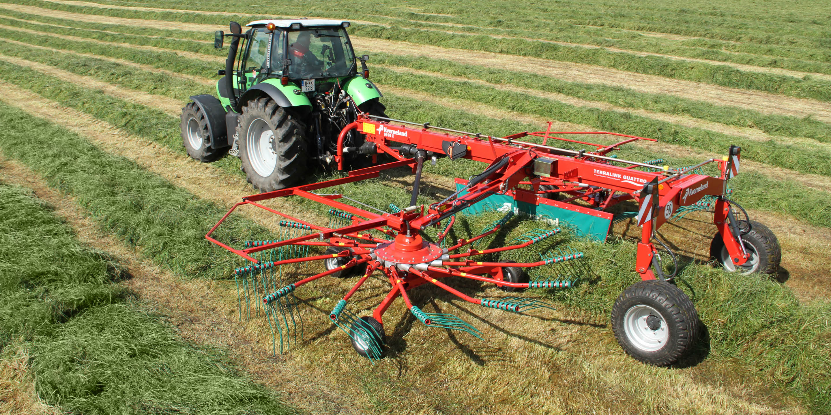 Kverneland CompactLine and ProLine rakes are designed for efficient, reliable performance across a wide range of conditions, with working widths ranging from approximately 7 m to 9 m.