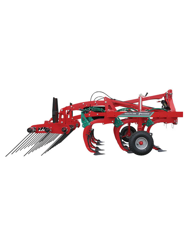 The Kverneland Enduro Pro and Kverneland Enduro Pro T deliver high-performance cultivation in all soil conditions, combining a 3-row tine layout, optimised 275–285 mm tine spacing, and high underbeam clearance for excellent mixing and residue flow. Hydraulic on-the-go depth adjustment via a double parallelogram roller linkage allows precise control from the cab, with working depths of up to 35 cm.
