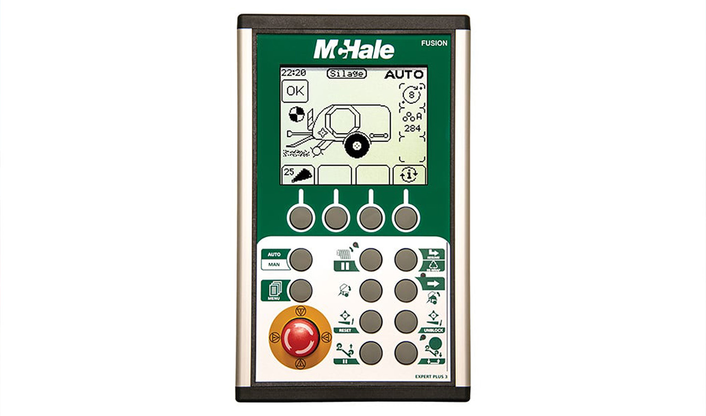 The McHale Fusion 4 is fitted with an Expert Plus control console, which features a large graphic display; this allows the operator to monitor the baling process graphically from the control console. It also features: