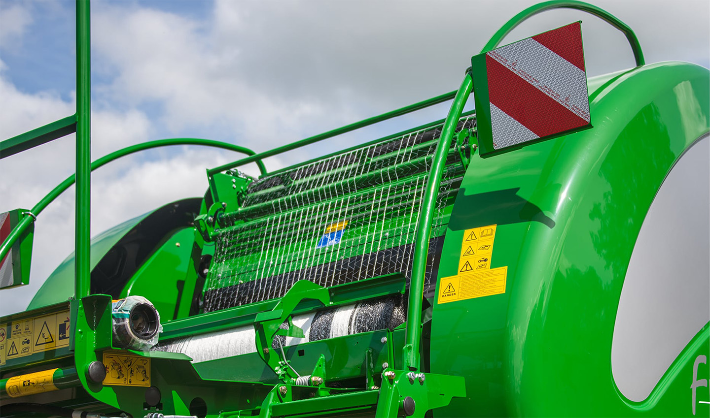 The McHale Fusion 4 Plus uses net of film to bind the bale in the chamber and features the McHale patented bale transfer and vertical wrapping ring, which are noted for their reliability, speed and positive bale transfer in hilly conditions.