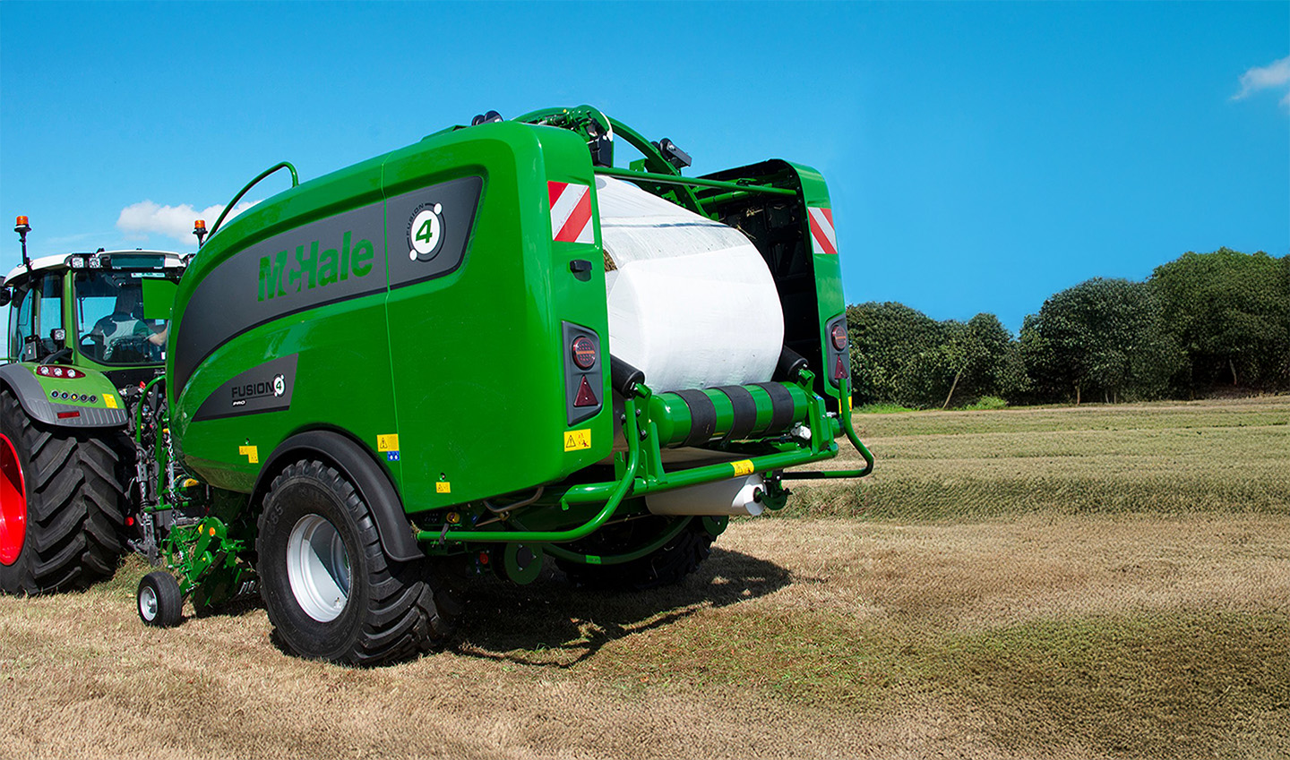 The McHale Fusion 4 Plus is a fully automatic integrated baler wrapper which is controlled using ISOBUS. The McHale Fusion 4 Plus provides new levels of operator comfort with it’s easy-to-use control system, in-cab net & density adjustment, camera, and faster wrapping speeds along with a host of other new features.