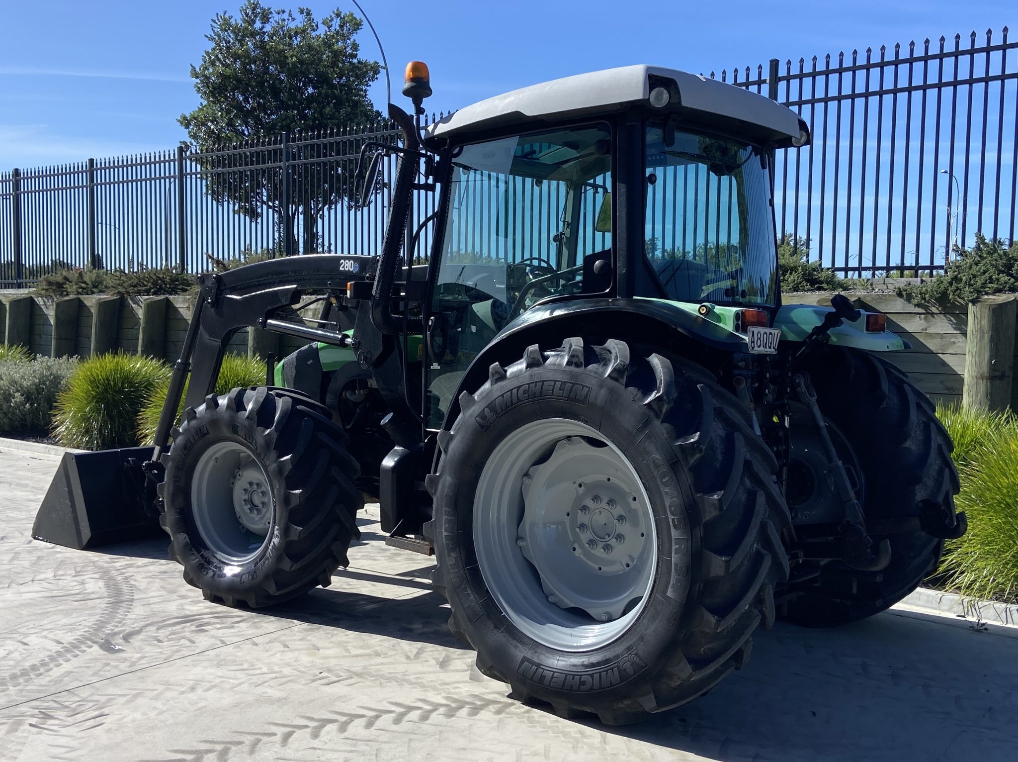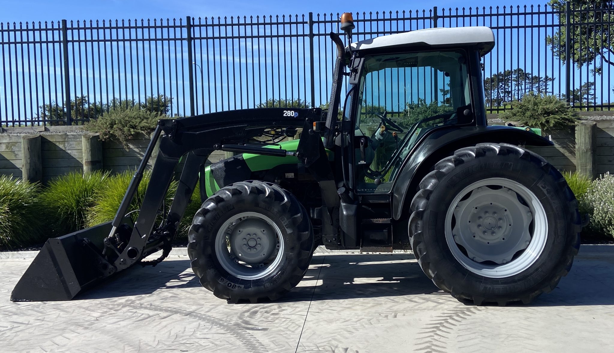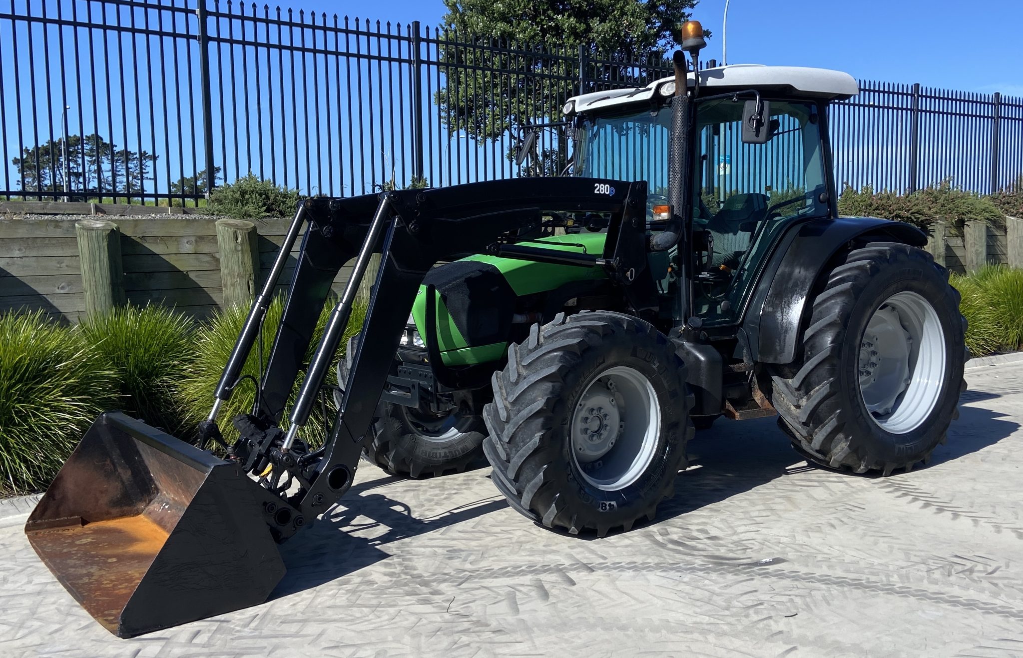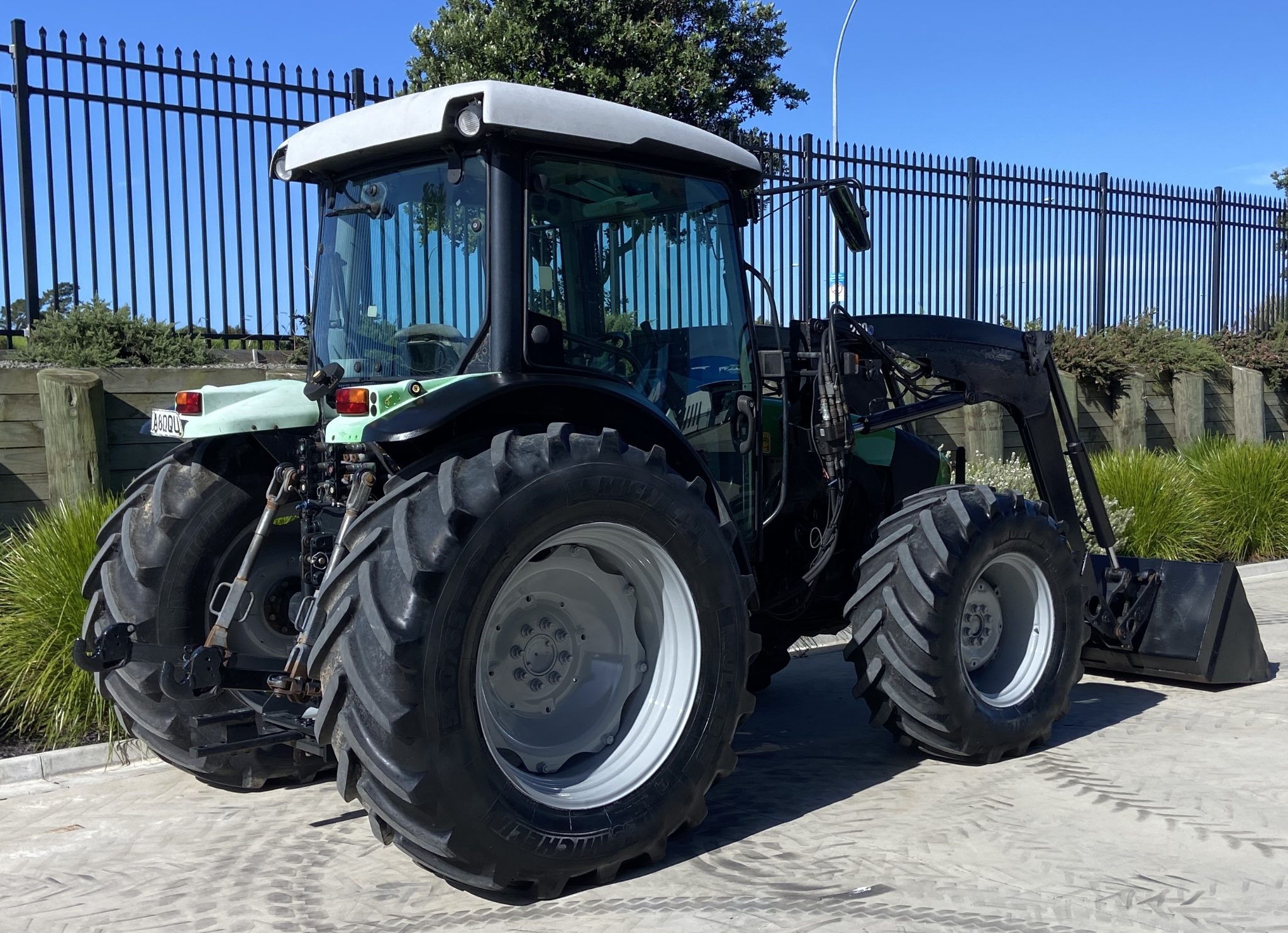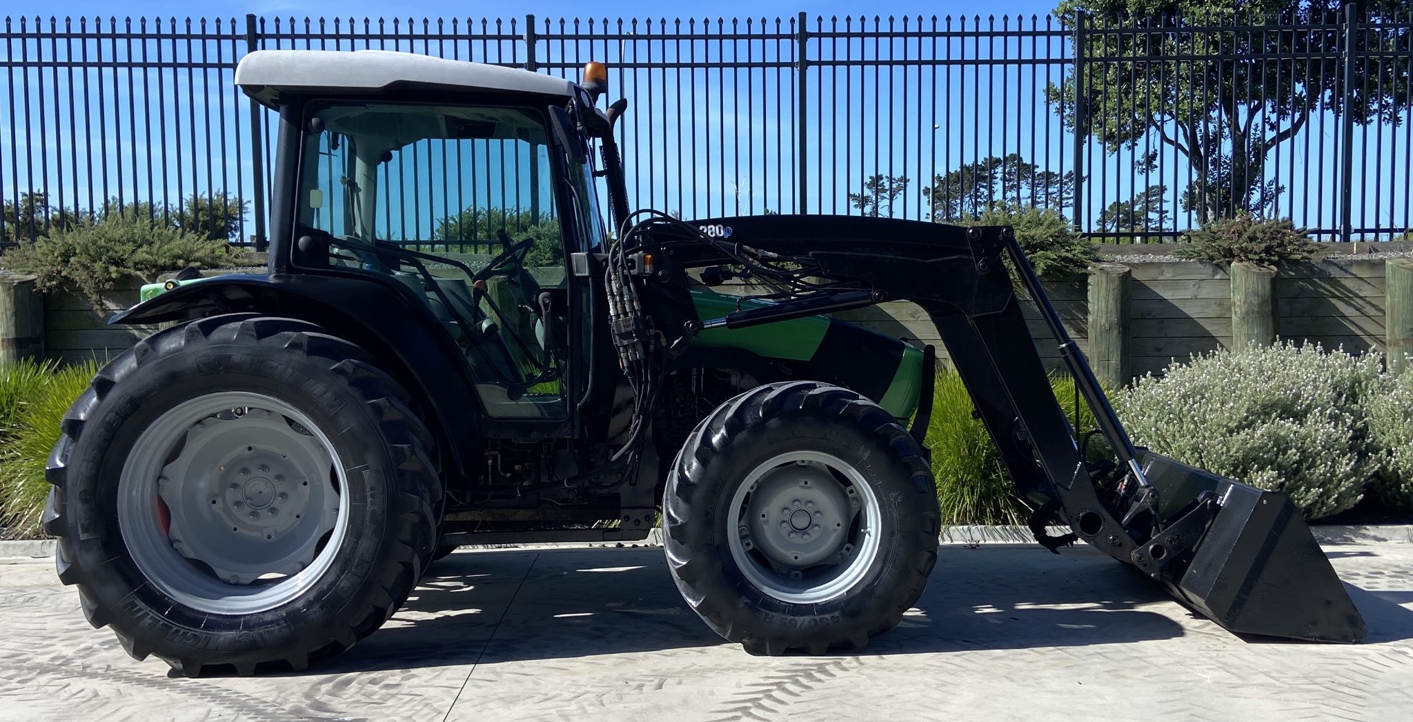 Deutz Fahr 420 100Hp, 4010hrs, 4wd, Wet Clutch Electric Shuttle F/R, 40x40 speed with Hi/Low, SL FEL c/w 3rd Service and Euro Hitch, Cab with Heater / Aircon, 3x Rear Remotes, 4 Speed PTO, Cat II Hook Draft Arms, Michelin Tyres, Serviced and ready to go in a tidy order