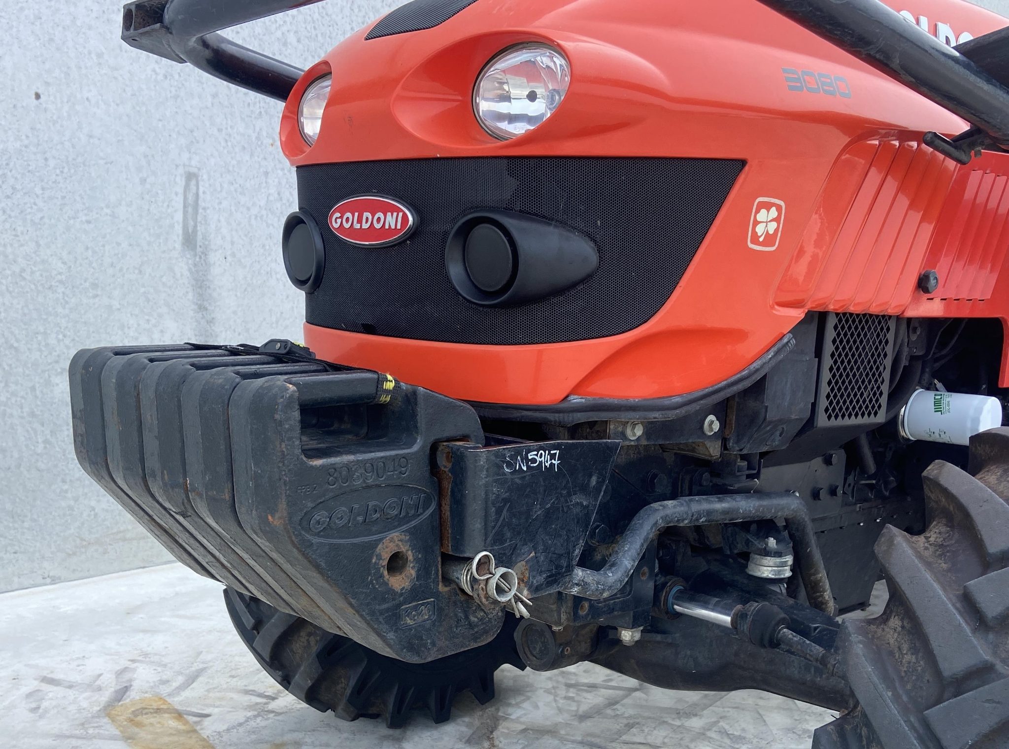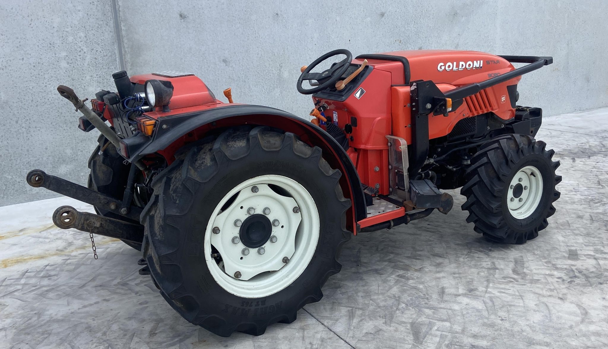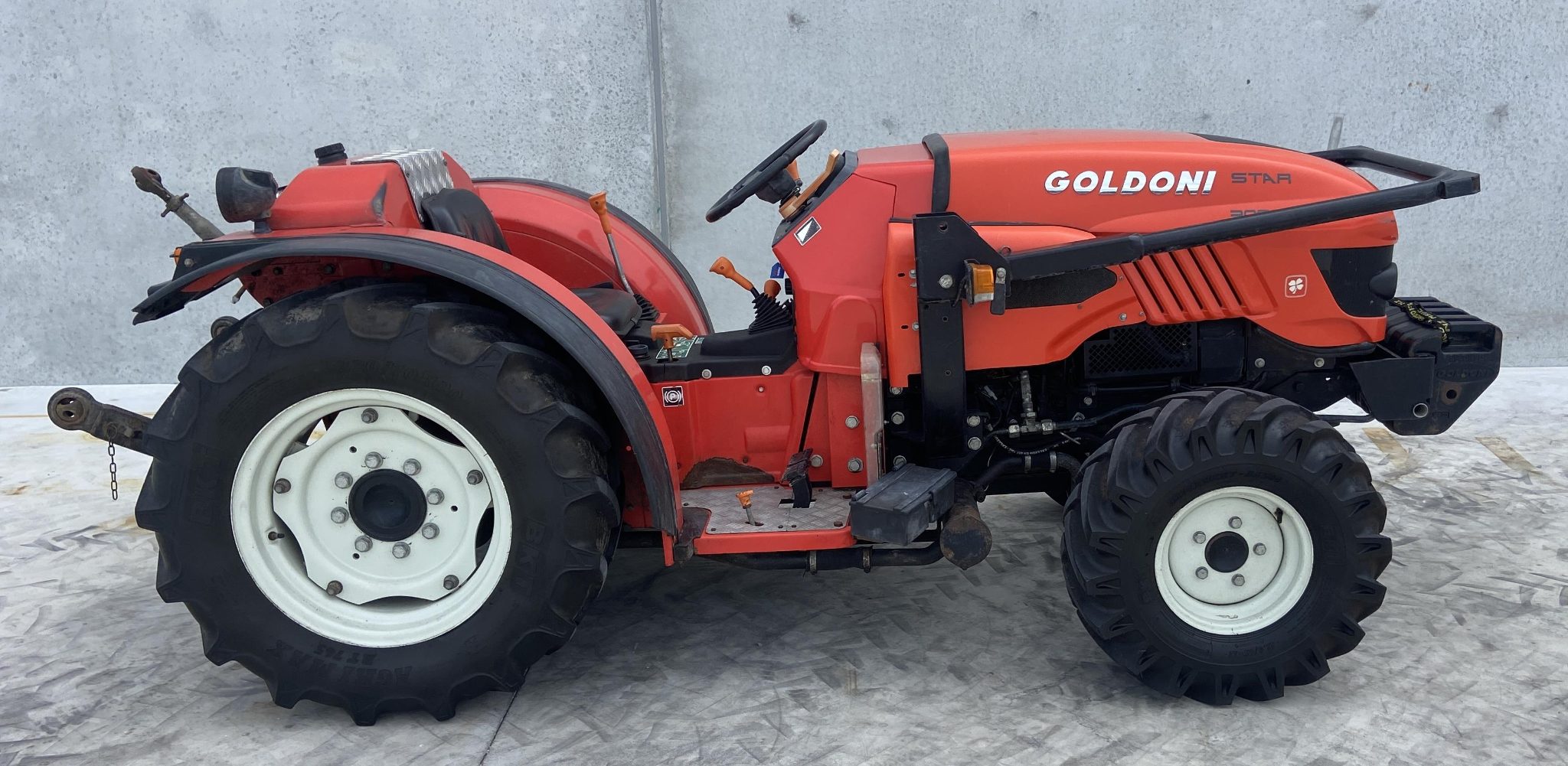 Goldoni Star 3080, 80hp, 1115hrs, 4wd, 2x rear remotes, 3 speed PTO, 16x8 speed transmission with shuttle F/R, C/w 5x 20kg suit case weights, Very tidy and would suit new buyer