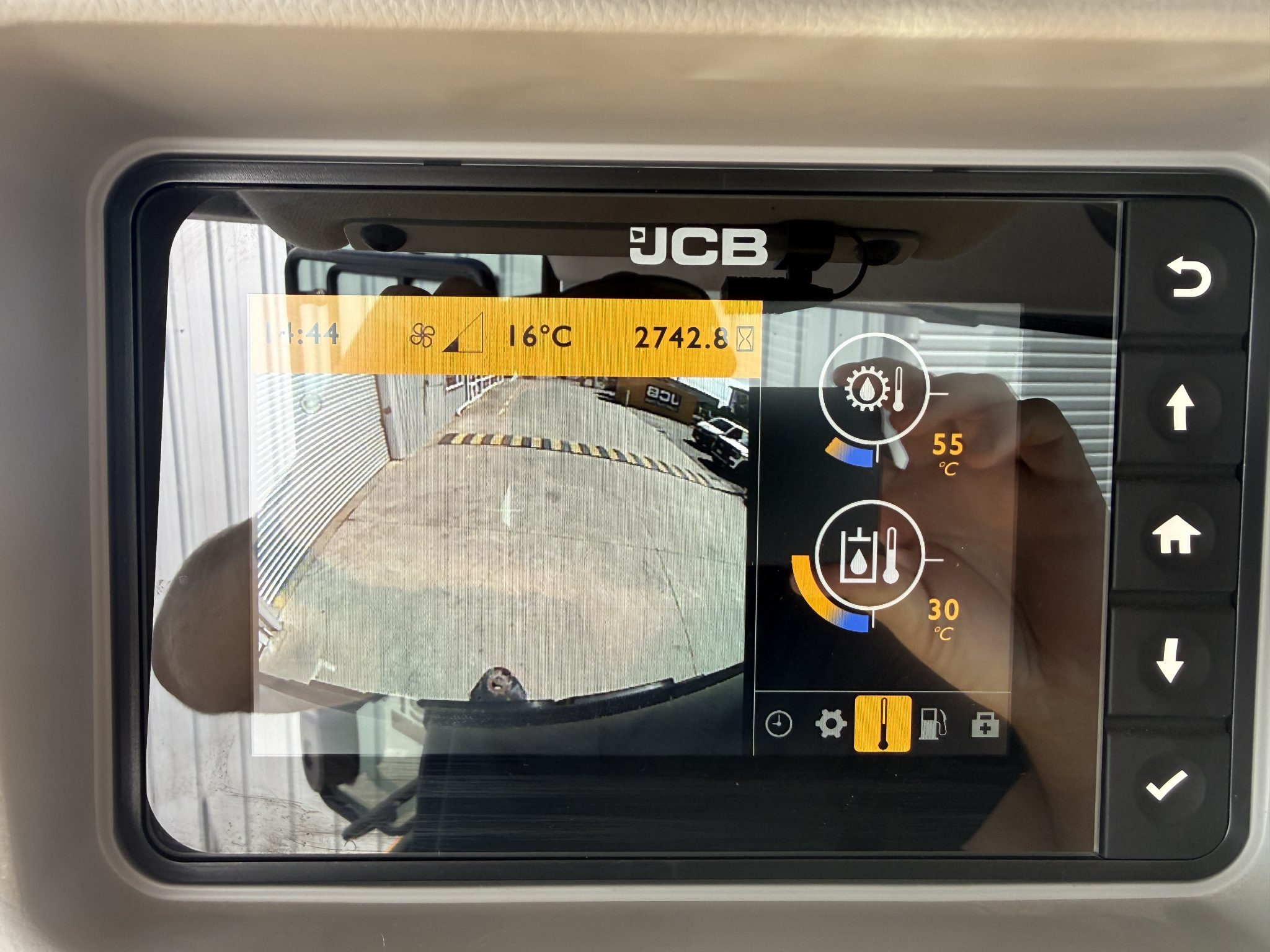JCB Command Plus Cab (3.4m2) in Contractor Pro Spec with colour reversing camera, Deluxe cloth air suspension seat with heated base, cool box, climate control.