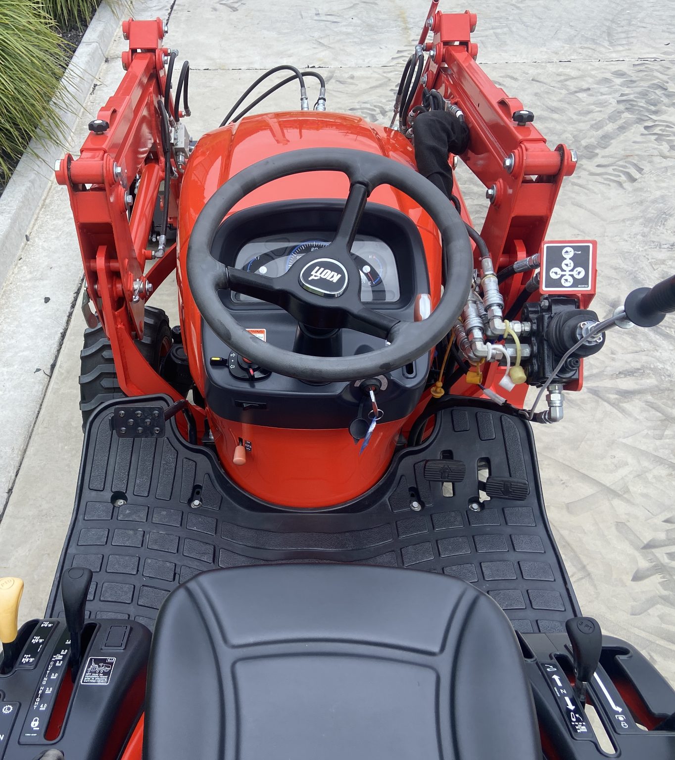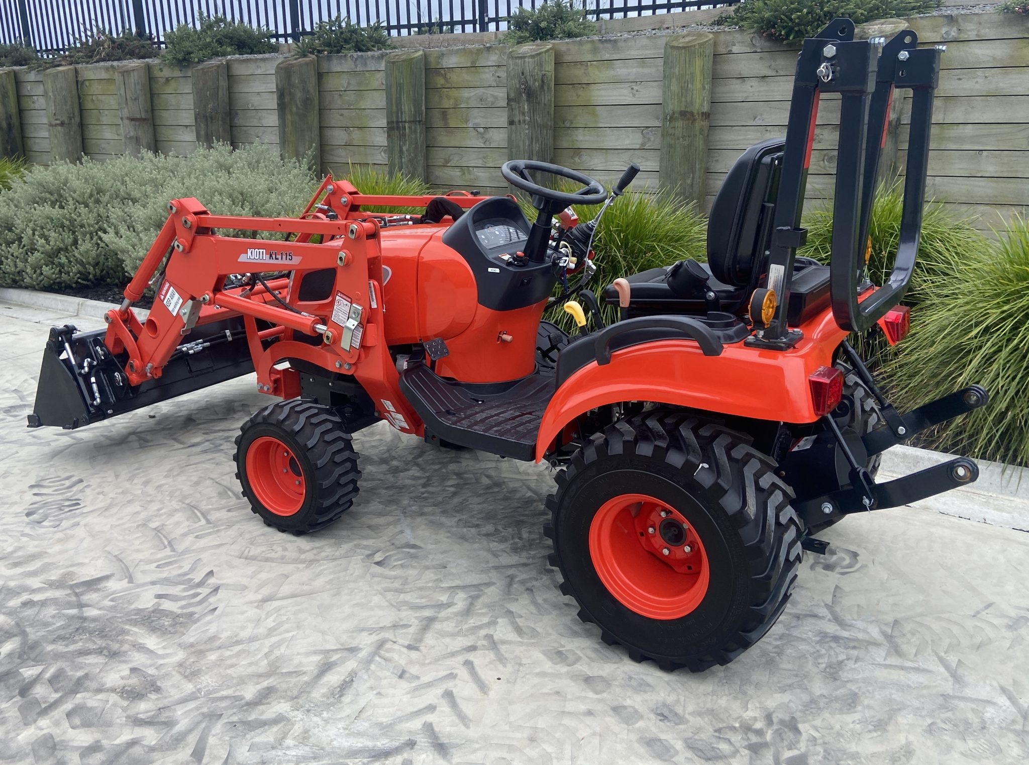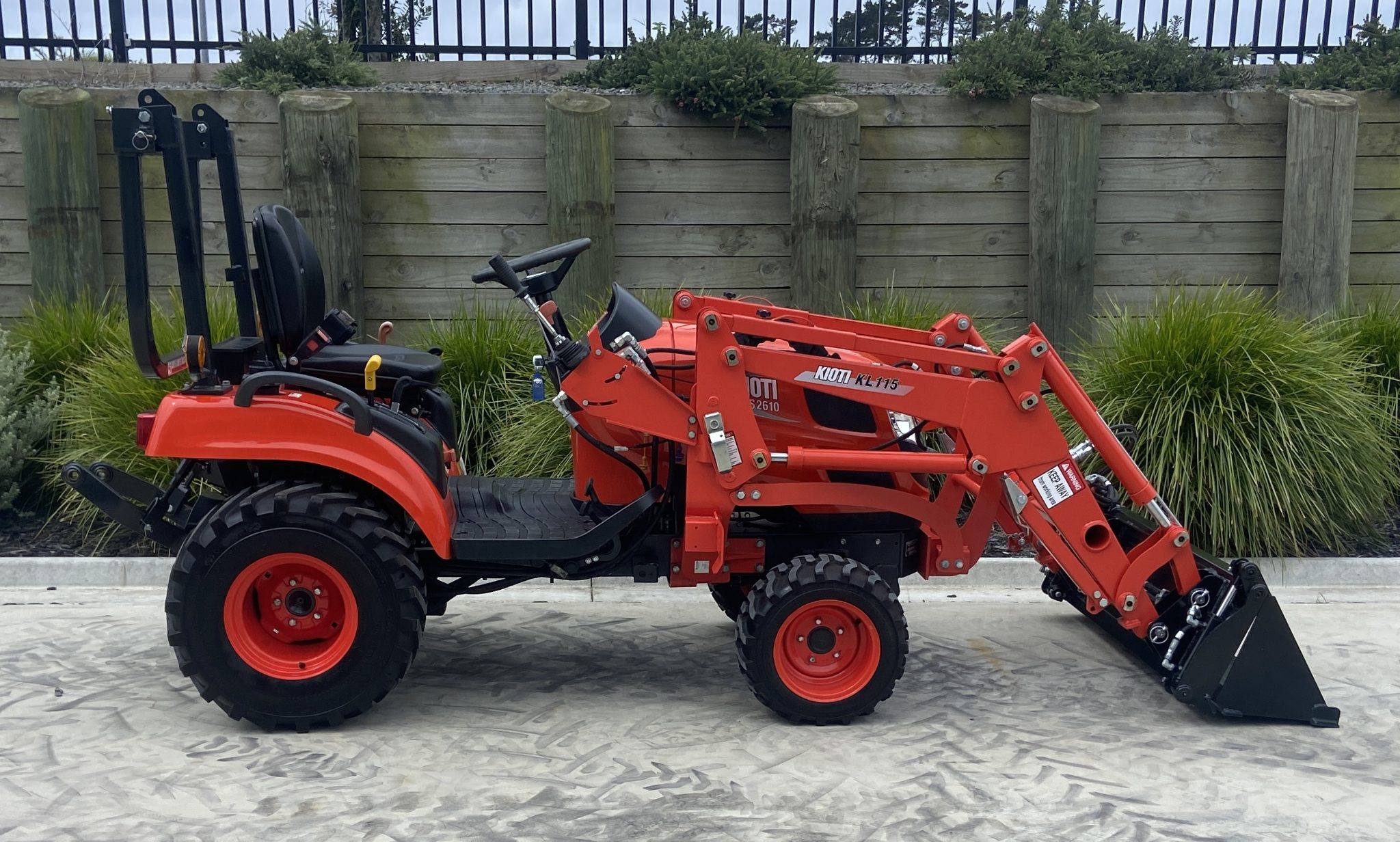 New Kioti CS2610, Compact tractor with a big presence, 4wd, 25hp 3cyl Diesel, 2 Speed Hydrostatic with twin touch pedals, Rear 3PTL, and PTO (540rpm) Mid mount PTO, Flat platform making getting on and off easy, Diff Lock, Self Level FEL, 3rd service and 4in1 bucket. Gusty little tractor that will surprise you