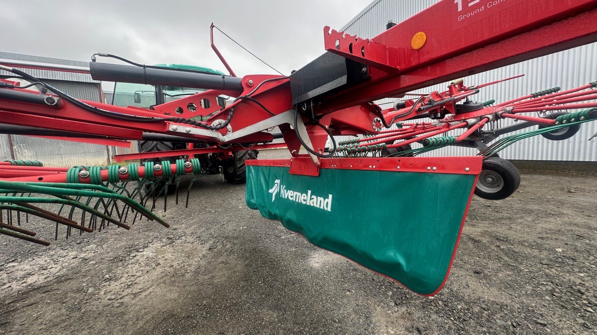 The Kverneland Taarup 9590 C Hydro is a heavy duty two-rotor rake with working width of 9.0 m. Designed for the toughest conditions and feature a high performance oil-bath gearbox and a strong carrier frame. The hydraulically adjustable working and swath width and ability to make sharp turns of up to 80 degrees are important features of these rakes.