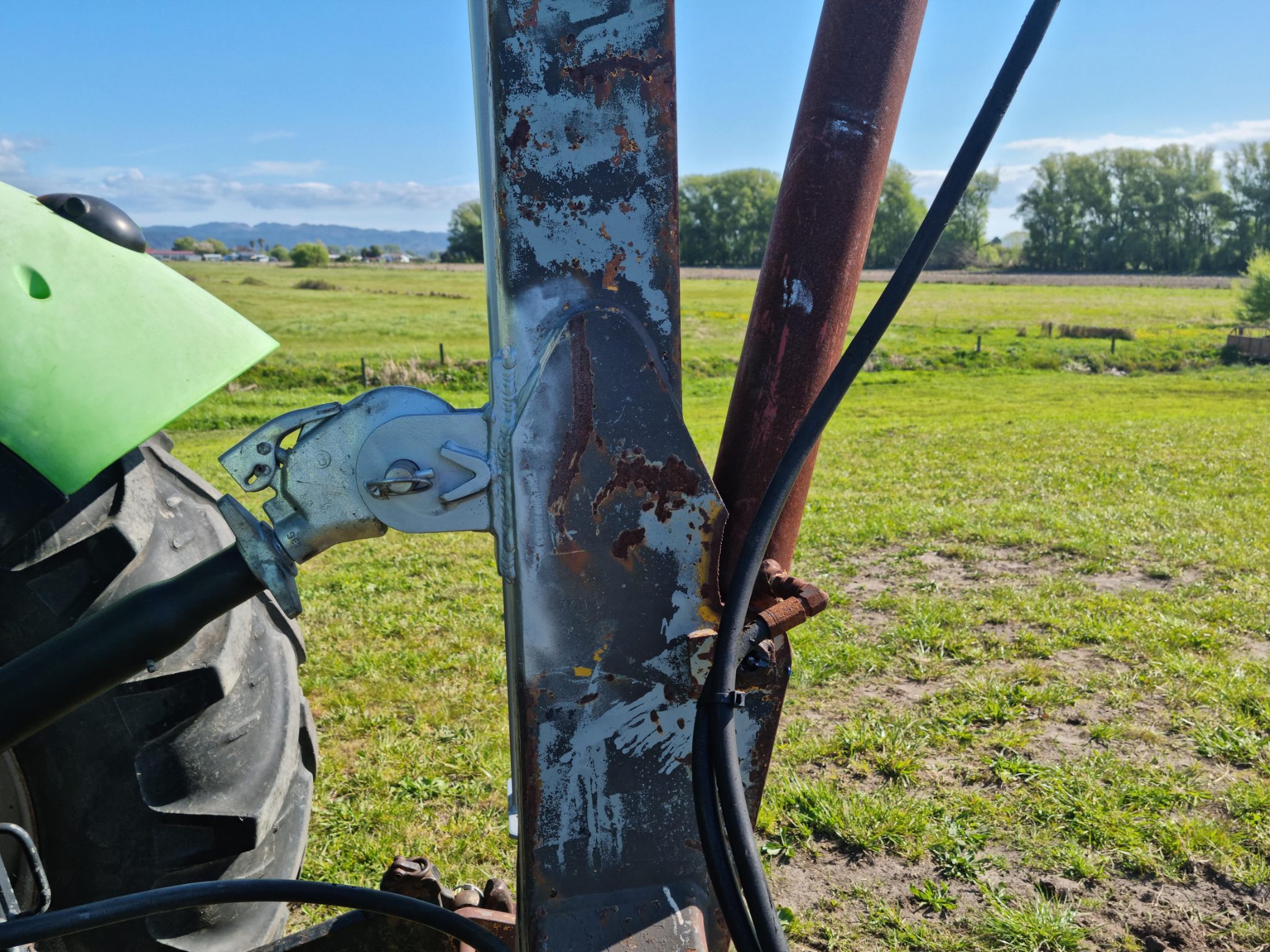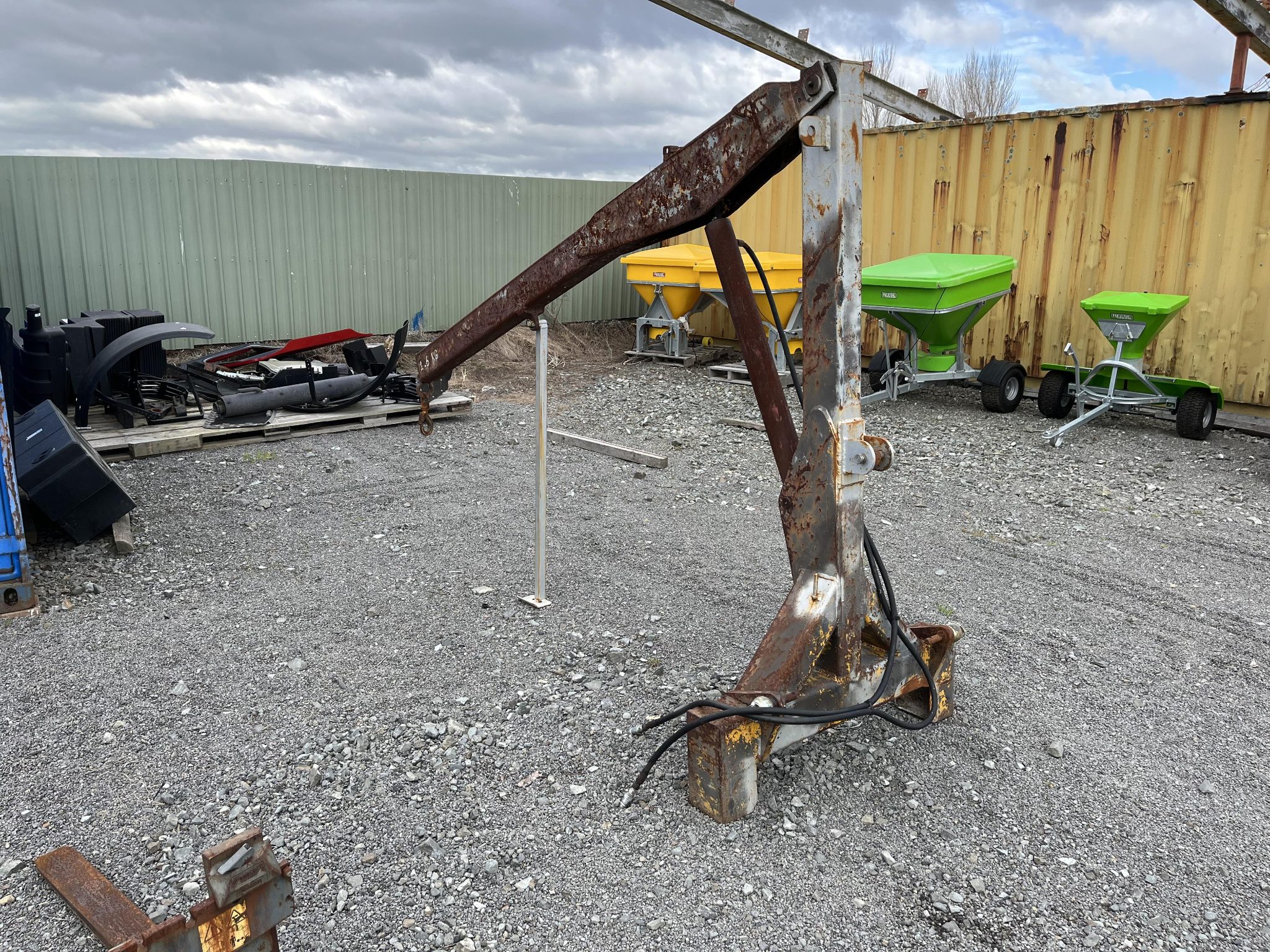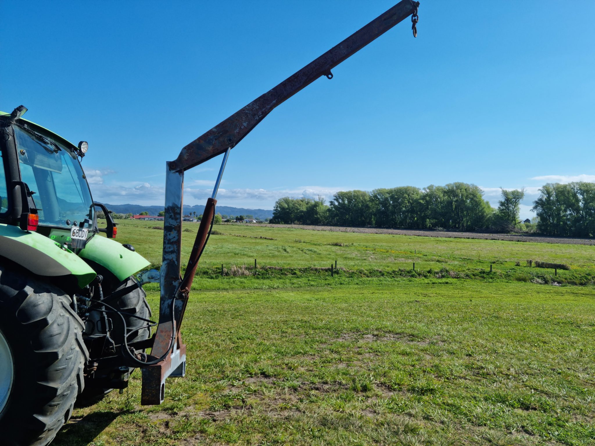 Hydraulic lifting Jib to mount on the 3PT linkage of a tractor.