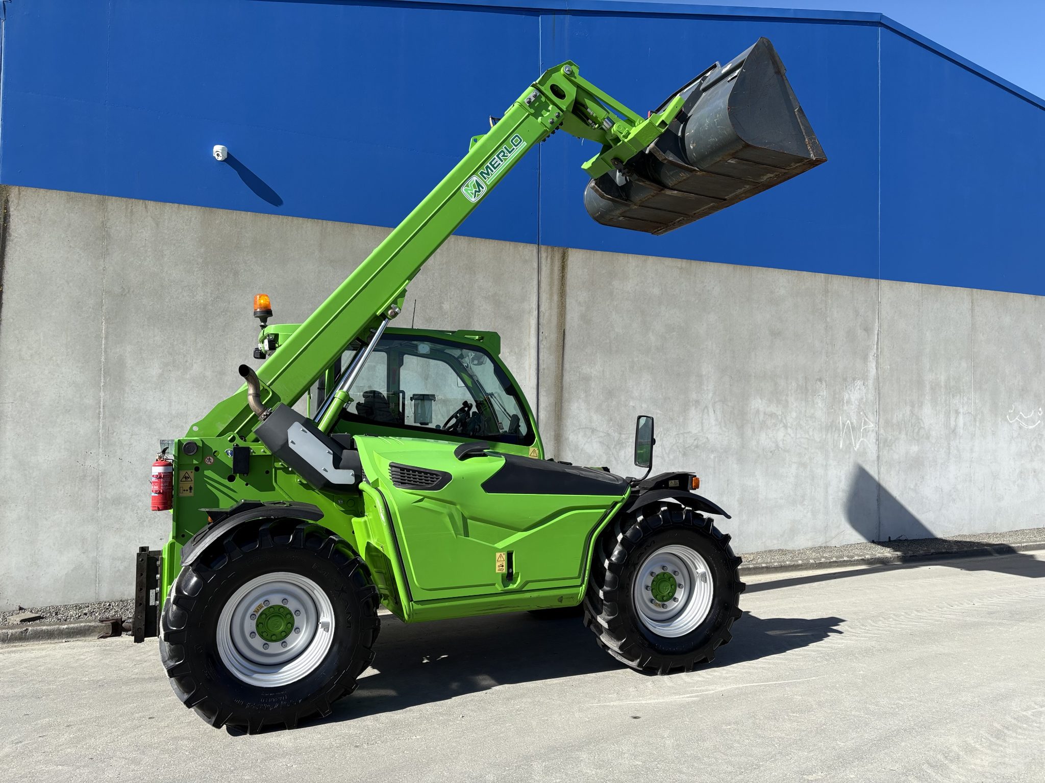 Merlo 42.7-140, Cabin suspension, boom suspension, 4.2ton to 7.0mtrs, new 460/70R24 tyres all round, Merlo bucket, 140hp, two rear remotes, tow hitch, this is a high capacity telehandler with amazing comfort and power.