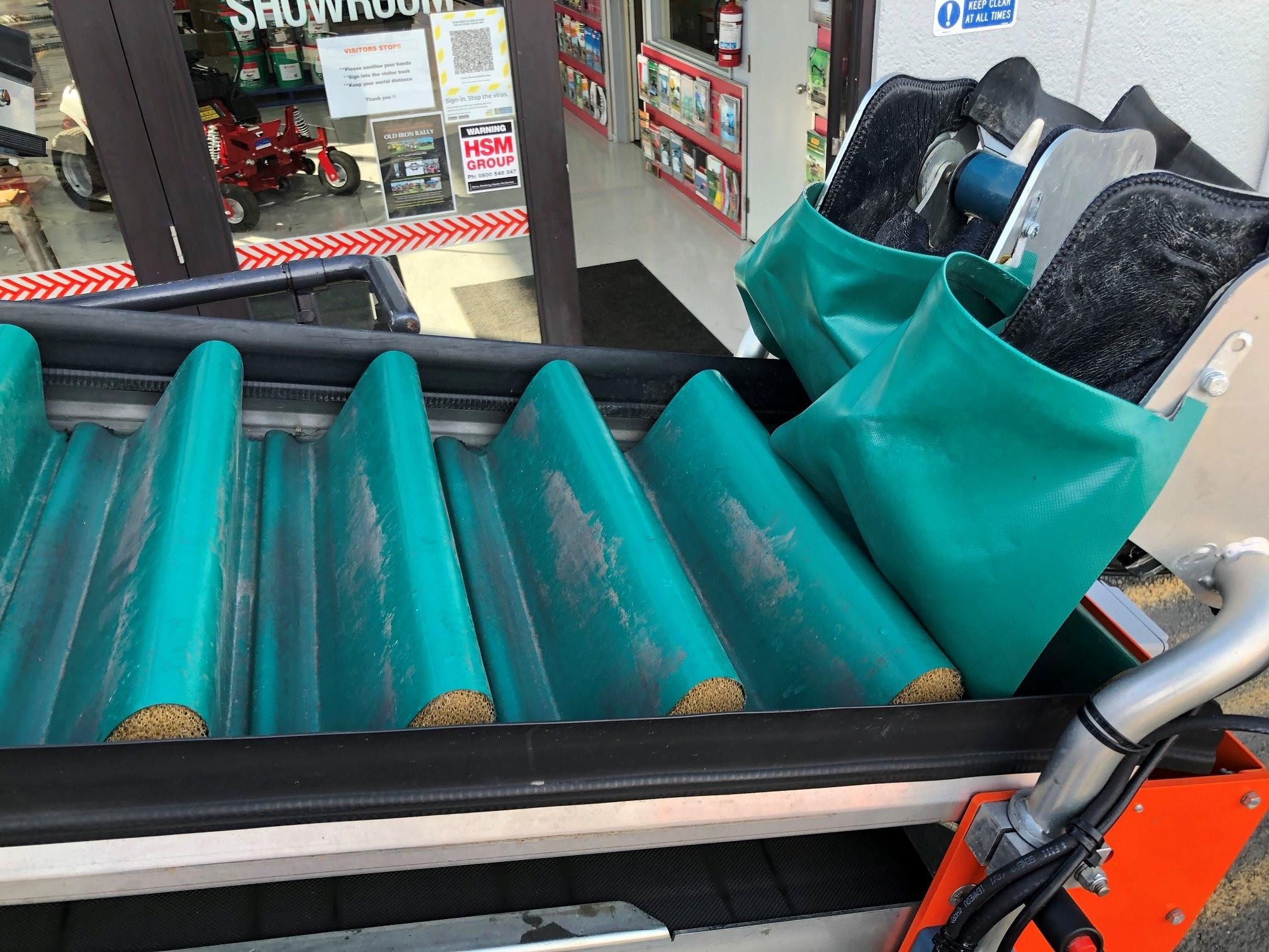 Cruise Control for steering, 4 Conveyor belts, holds two bins while filling one