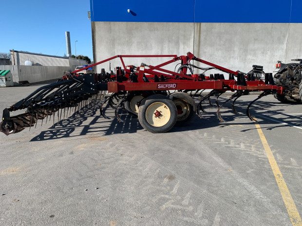 Very tidy Salford 450 8.0 mtr tined cultivator with leveling harrows and crumbler roller, good heavy duty cultivator with sprung legs, heavy duty points ,draw bar with two sets of remotes, double oscillating depth wheels, great for primary and secondary and finishing passes, great flexible tool.