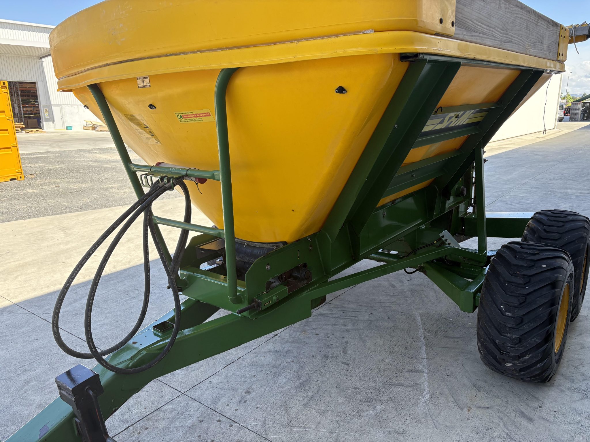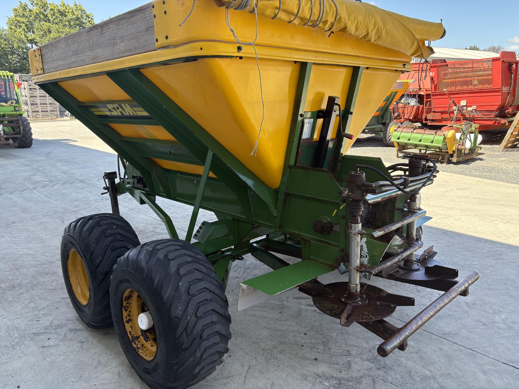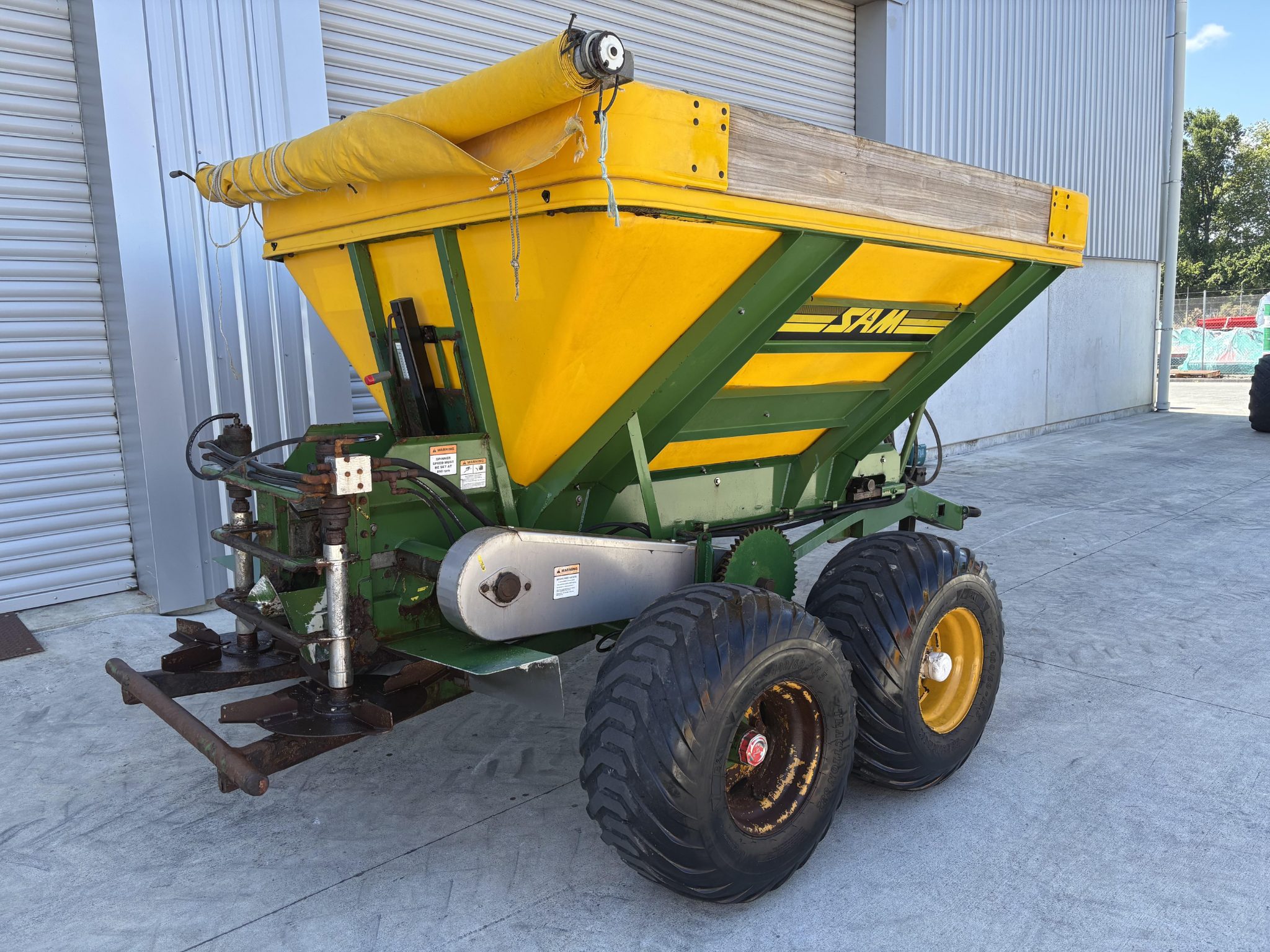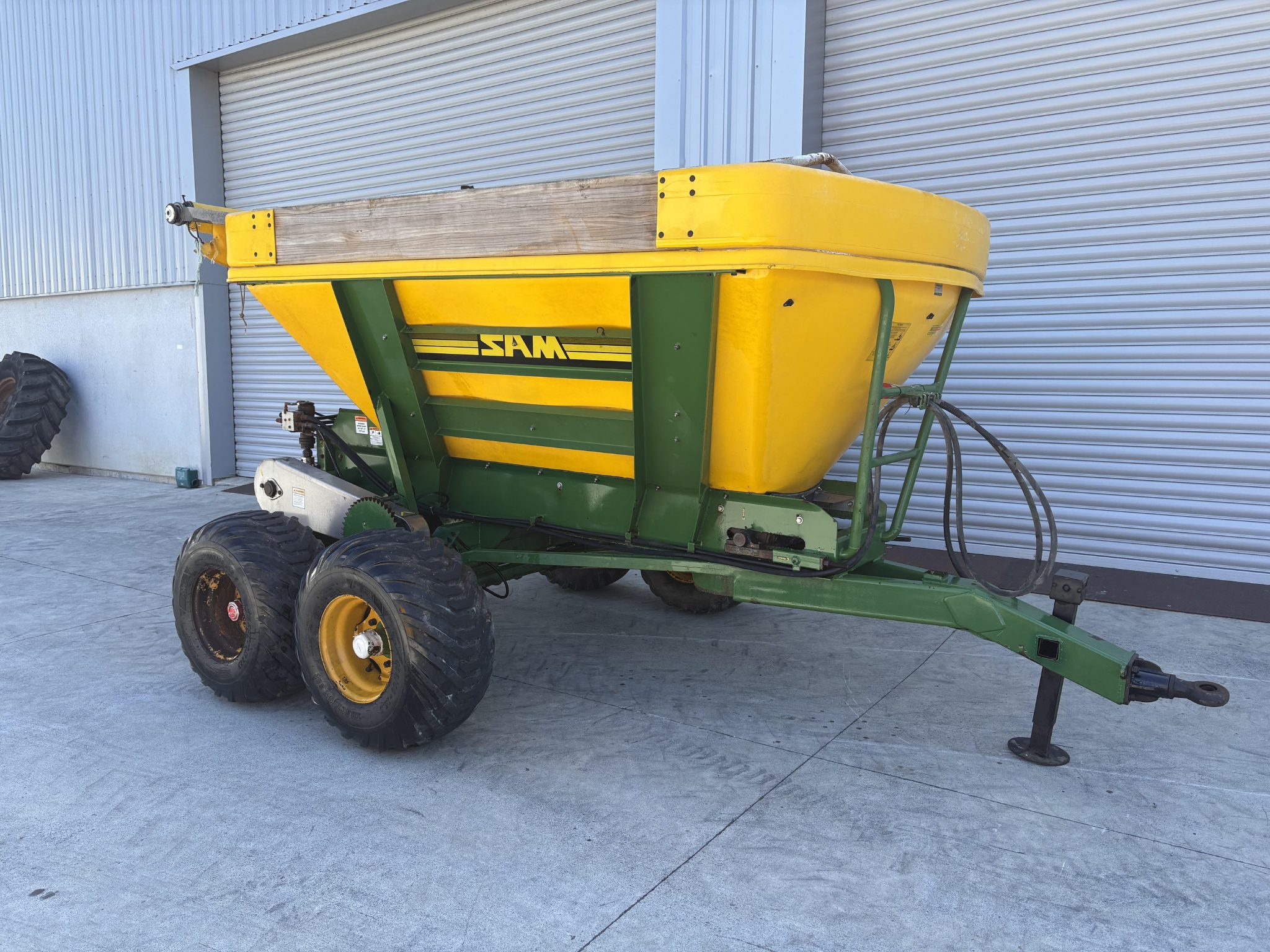 2012 SAM 6 Tonne Tandem Axel Spreader - roll-top cover & clips, remote axle greasing, swivel coupling. $21,990+gst